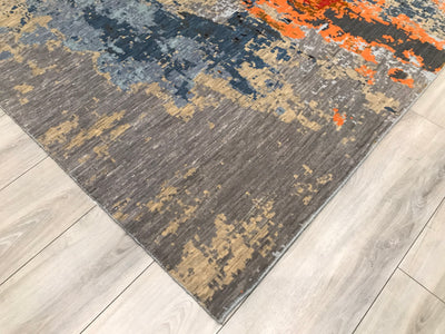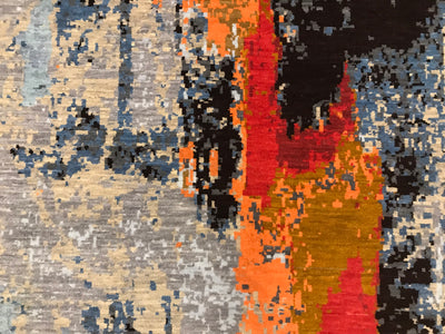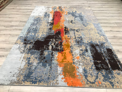 Seal No:   10209 Origin:      India Modern HDFR Collection  Quality:    Hand Knotted Wool  Size:         6.1 x 9.1 Condition : New  Color: Gray-Cream-Black-Tan-Gold-Orange-Red-Blue HandSpun Wool ...